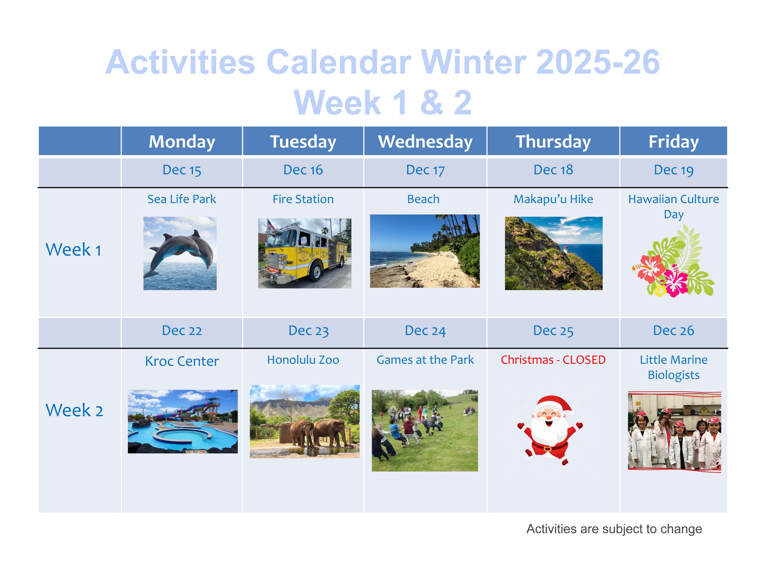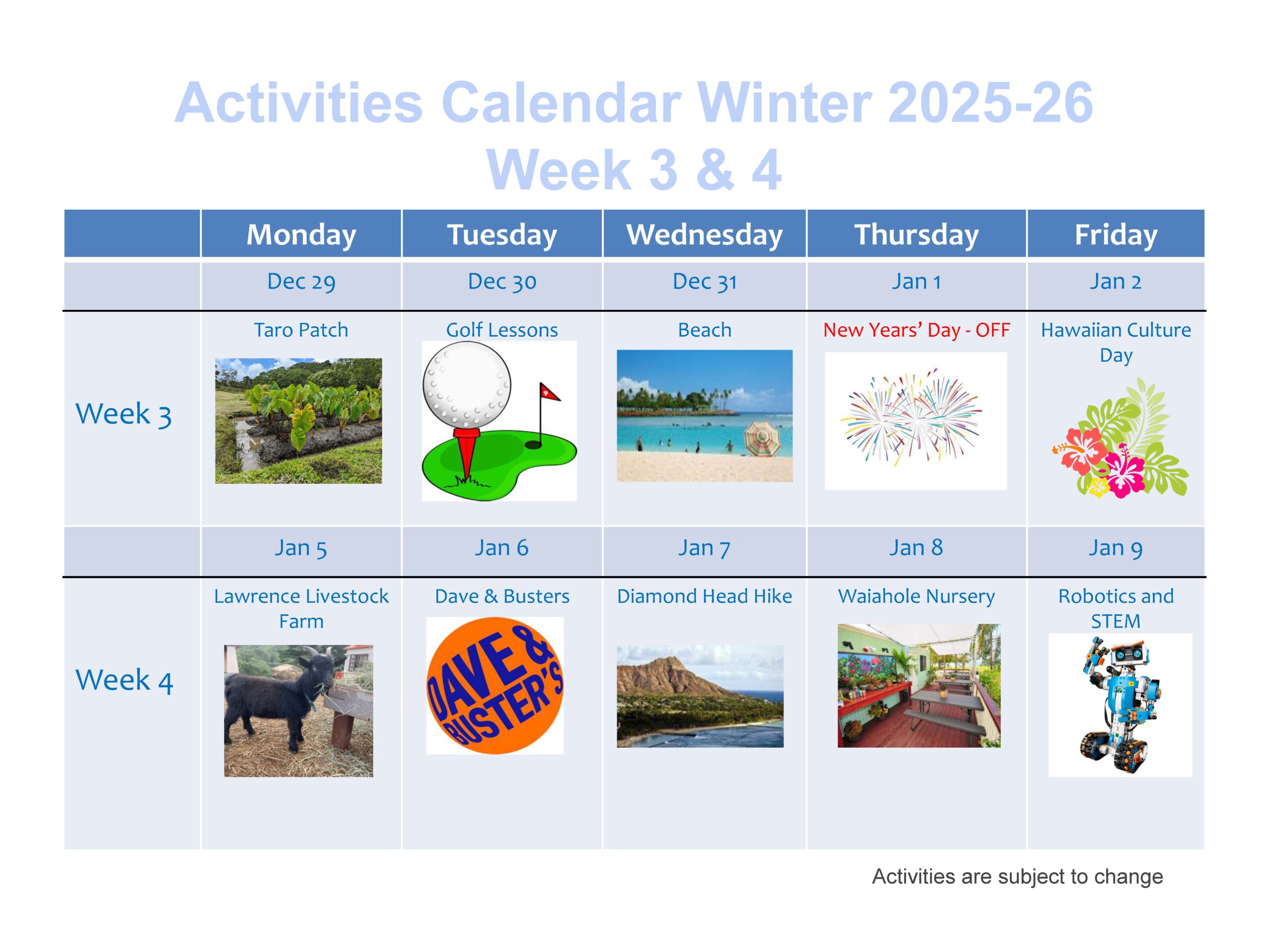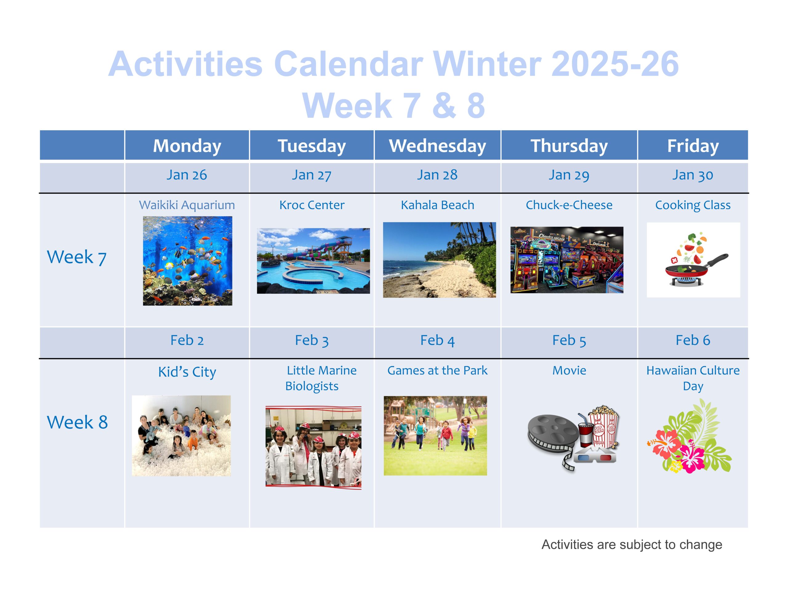 ※アクティビティーは予告なく変更になる場合がありますのでご了承ください。